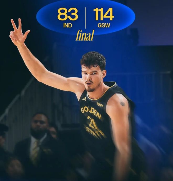 第四节决战,巴特勒背打内姆布哈德转身挑篮命中,接着再抢断快攻暴扣得手,勇士领先到14分打停步行者,比赛再无悬念,最终,勇士114-83大胜步行者31分,送给对手4连败。 数据方面,勇士队这边,库明加出战20分钟,投篮9中1,得到5分8篮板2助攻;巴特勒15投10中,罚球4罚1中得到21分9篮板7助攻2抢断1封盖,仅用40场比赛拿到500+得分200+篮板200+助攻,创造队史最快纪录。 步行者这边,本-谢泼德10中1仅得3分4篮板;杰-胡夫11中5得到12分11篮板2助攻3盖帽。