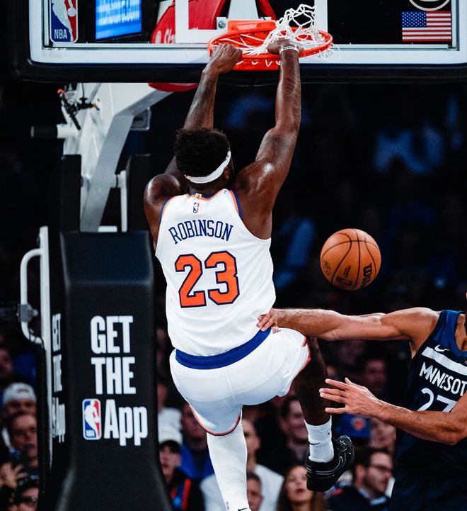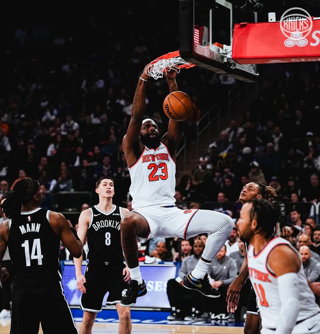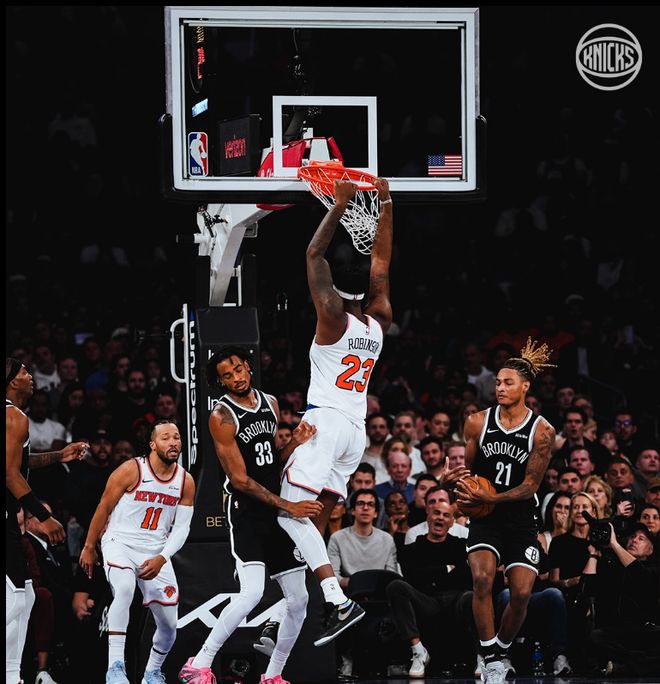 在最近的一场比赛中,尼克斯队以134-98血虐了篮网队36分,在这一场比赛中,尼克斯队首节便以18分的净胜分(40-22)奠定了胜局,首发五虎中的布伦森+汤神+布里奇斯+阿努诺比都在半场时间里,高效砍下了15+的得分,不过,最令人钦佩的应该是首发五号位的米切尔-罗宾逊。 米切尔-罗宾逊尽管本场比赛得分没有上双,但是,他在出战的16分钟里4投4中,得到8分的同时,还抢下了8个篮板,2个抢断,2个盖帽的数据,攻防两端存在感十足,使得他创造了一项历史纪录。