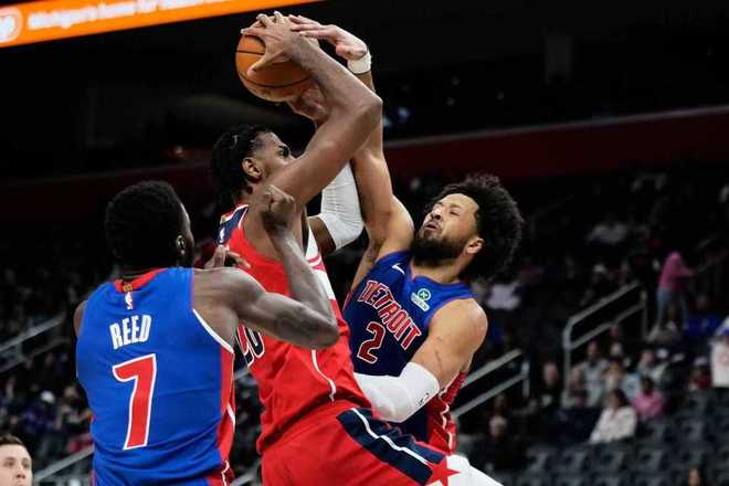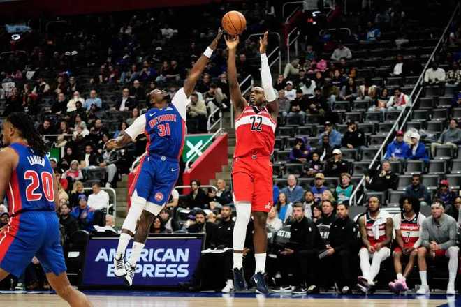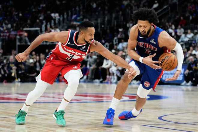 数据统计 活塞:坎宁安46分12篮板11助攻5抢断2盖帽,杜伦19分14篮板,格林11分11篮板,罗宾逊13分,詹金斯4记三分24分8篮板4抢断。 奇才:麦科勒姆5记三分42分5篮板4助攻,乔治14分6助攻,萨尔15分15篮板,约翰逊10分,卡林顿11分,惠特摩尔20分。 比赛回顾 活塞过去6场豪取6连胜高居东部第一,奇才过去8场遭遇8连败联盟倒数第一。本场活塞缺少奥萨尔、艾维、萨瑟、斯图尔特与哈里斯,奇才缺少库利巴利。首节双方均是轰下35+展开对攻,活塞开局5-9落后,奇才一波6-2攻势追到11-11。奇才连得6分,活塞反超逐步以21-19反超2分,双方之后交替领先缠斗,首节结束活塞36-37落后奇才。奇才23中14与三分6中4均达到6成在内线,麦科勒姆6中5得到16分与惠特摩尔4中4得到10分,活塞23中11与三分9中3,坎宁安13中4得到11+4+2。