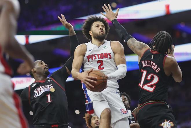 先别着急吐槽,坎宁安打一场致敬式的比赛也是有原因的。正如前文所说,活塞今天缺太多人了,有点持球攻能力的都在板凳上,坎宁安一肩挑也没办法。这场比赛他的数据非常全面,除了夸张的出手,还有三双+5断2冒。 活塞东部第1,休假期有人能想到吗? 看纸面阵容,活塞到不了这个程度。但之前聊活塞时也确实感慨过,这支球队上个赛季用一套一般的纸面阵容,交出了超预期的比赛表现。比克在骑士时期就证明过,他能调教出超级高水平的防守,而这个特点在活塞延续。活塞的单兵防守素质也不俗,奥萨尔飞天遁地,霍兰德横移迅捷,贾冯特·格林可称勇猛,里德高光频频。斯图尔特挂流血冲锋的狂暴战形象深入人心,这注定了他是狠人一枚,矮壮的身材奋力起跳封盖,观感就很有气质。领袖坎宁安看似闷骚,其实防守相当可以,领防、补防积极,这一端不能低估。 活塞的比赛很有打击感,对76人那场很能反应这个修辞。一方面,活塞团队防守热情,前赴后继地去逮风驰电掣的马克西,攻的、防的都尽兴。另一方面,活塞确实空间不咋地,攻筐有头铁嫌疑,所以反向也被对面打击。