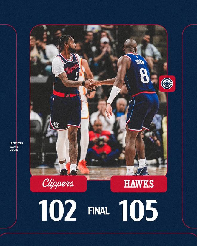 丹尼尔斯抛投不进,哈登再进三分球,快船追平比分。老鹰请求暂停,克雷伊奇外线取分,哈登与约翰逊在禁区斗法。哈登上篮不中,波尔津吉斯大帽祖巴茨,里萨谢抢断哈登,波尔津吉斯罚球命中。丹尼尔斯、祖巴茨各有篮下得分,波尔津吉斯、哈登各有2罚全中,比赛进入白热化阶段。 科林斯大帽波尔津吉斯,克雷伊奇命中打板远投,老鹰领先7分得以占据比赛主动权。哈登命中3+1,为快船续命。琼斯抢断,距离终场还剩15秒,哈登超远三分球不中,里萨谢2罚不中。哈登抢下篮板,巴图姆出手远投未果,比赛时间走完。最终,快船以102比105惜败老鹰,吞下了5连败。 两队数据 老鹰队,波尔津吉斯12中5得到了20分3板4助3帽、杰伦约翰逊16中7贡献16分10板8助、里萨谢11中4得到11分5板3帽、奥孔武10中4得到10分6板3助、肯纳德7分4板2助、丹尼尔斯9中3得到6分3板8助3断、华莱士5分4板1助、盖耶2分3板2助。 快船不敌老鹰,吞下了5连败
