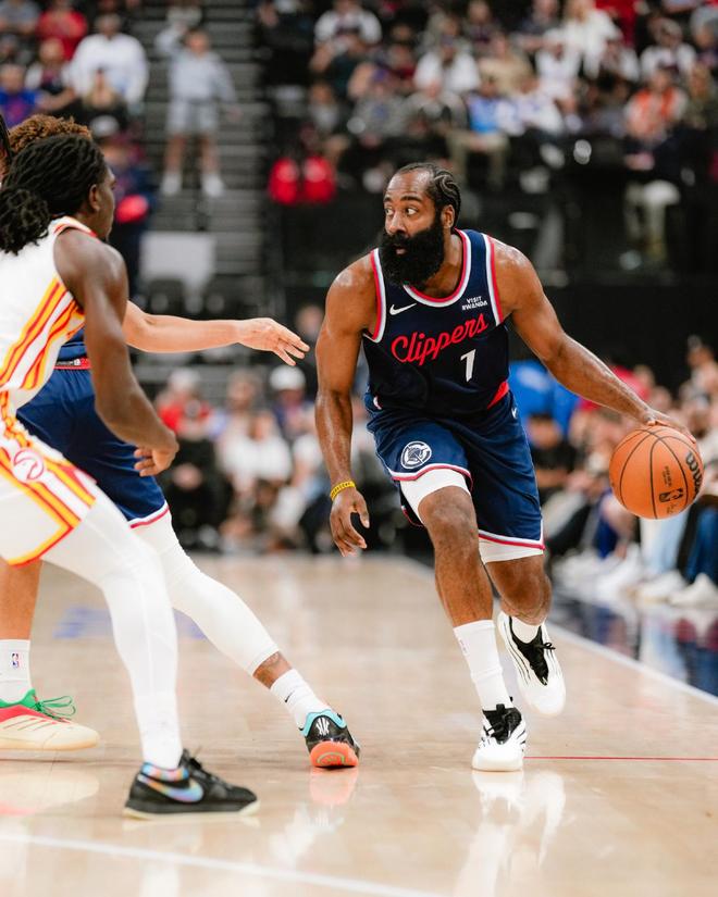 NBA常规赛正在火热进行中,快船坐镇主场与老鹰展开对决。4连败的快船,志在触底反弹。此役,卡哇伊莱昂纳德、布拉德利比尔伤停,哈登携手祖巴茨、琼斯、科林斯、邓恩出任首发。特雷杨、沃克伤停,亚特兰大的首发五虎是波尔津吉斯、杰伦约翰逊、里萨谢、丹尼尔斯与华莱士。后场球星哈登与顶级防守悍将丹尼尔斯的较量,是此战的一大看点。科林斯面对旧主发挥如何,也值得期待。 哈登35+10+11+末节19分刷爆纪录,快船5连败!克雷伊奇28+3+8记3分! 全场比赛回顾 首节开打,丹尼尔斯抢断哈登,邓恩抛投打进还以颜色,科林斯被封盖,随后强攻得分找回颜面。波尔津吉斯补扣得分,祖巴茨连续2次勾手打进,琼斯补篮打进,哈登跳投命中,快船打出了12比2的开局。约翰逊连投带罚得到4分,祖巴茨强攻低位得分,大洛外线命中。奥孔武、里萨谢携手上篮追分,泰伦卢请求暂停。 祖巴茨强攻篮下
