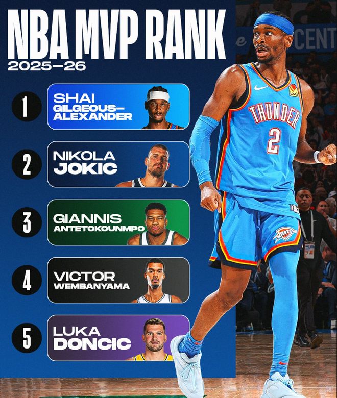 SGA所在的雷霆稳居西部第一,SGA的个人数据也十分出彩,那么他稳居MVP榜单第一就是板上钉钉的事情,今年很有希望连庄常规赛MVP。 |