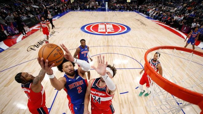 阿伦此战的10记三分破了队史纪录,单场10记三分也是阿伦生涯新高(此前为9记)。生涯之夜的阿伦,应该获得一个当日最佳的提名。 活塞与奇才的比赛,打得异常胶着。双方鏖战了一个加时赛,才得以分出胜负。此役,底特律球星康宁汉姆45投14中,罚篮18中16,怒砍46分12篮板11助攻5抢断2盖帽。尽管进攻效率不高,但是康宁汉姆依旧轰下了全场的最高分,展现了强烈的求胜欲望和进攻侵略性。康宁汉姆在防守端的表现,也堪称惊艳。 康宁汉姆暴走,活塞掀翻奇才