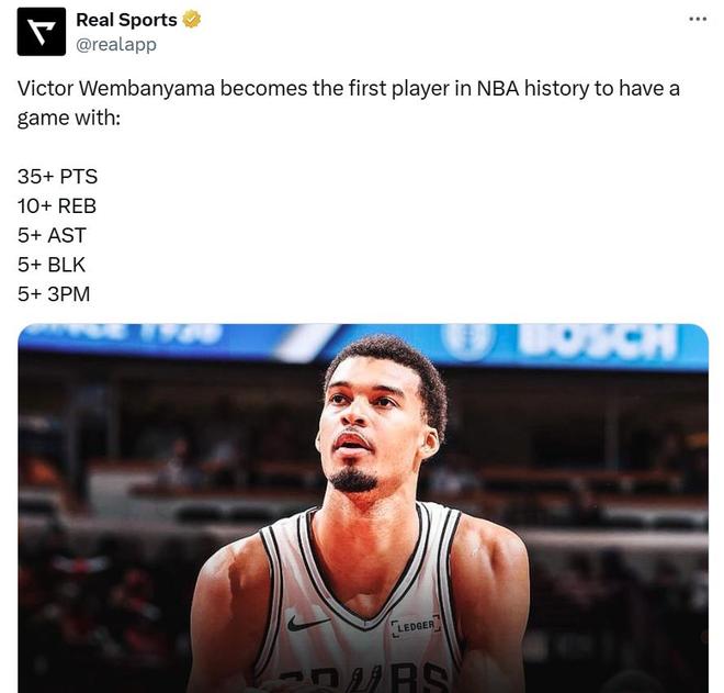 轰38分12板5助5帽,NBA历史首人!被夹懵的文班亚