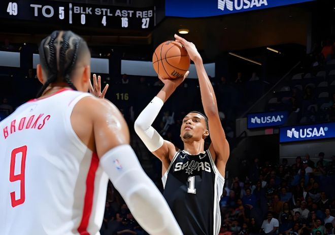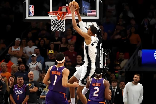 但时间回到11月3日,马刺vs太阳,文班亚马全场比赛14中4得到9分2篮板1助攻4盖帽,并且出现6次失误,这是这位大个子开赛季的火热表现之后第一次吃瘪,马刺也是吃下新赛季的第一败;此外,单场9分也是文班新赛季以来唯一的一场得分个位数的比赛,甚至是他新秀赛季以来的单场最低得分。 而回看这场比赛,作为送给马刺第一败的对手,太阳目前的防守效率排名联盟倒数第九,甚至是在击败马刺之前的四场比赛中,太阳防守效率直接排名倒数第二。 所以,难免让人有疑问,太阳到底是如何限制文班这位外星人的呢?