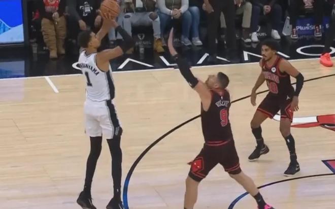 现在各支球队都想明白了,想赢马刺就得限制文班亚马,或者说,团战可以输,文班必须死。 但公牛显然是没有贯彻落实这一点,他们在最后关头居然单防文班亚马,被后者连续投进2个三分球,马刺直接反超了3分。