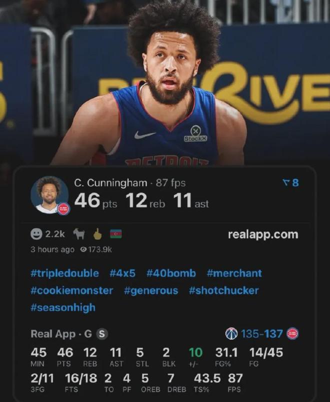 当然没写错,因为今天爆炸的不止文班亚马一个状元秀啊。 活塞的康宁汉姆也是状元秀,篮君前两天才吹完他,但今天他又炸了,只能再吹一遍。