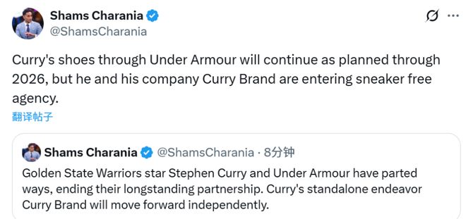 北京时间11月14日,据名记Shams报道,勇士队球星库里与安德玛已正式终止长期合作关系。库里旗下的独立项目“库里品牌”将继续独立运营。库里与安德玛合作的球鞋系列将按计划延续至2026年,但库里本人及“库里品牌”已进入球鞋领域自由签约状态,可自主选择新的合作方。