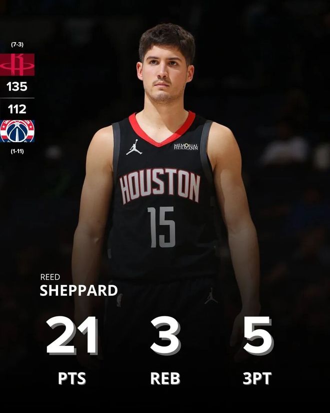 谢泼德,好像真的练出来了一点。 火箭的上一场常规赛,主场135-112击败奇才,这场火箭6人得分上双,其中,杜兰特、申京、阿门、贾巴里史密斯都属于常规操作,重点在谢泼德。