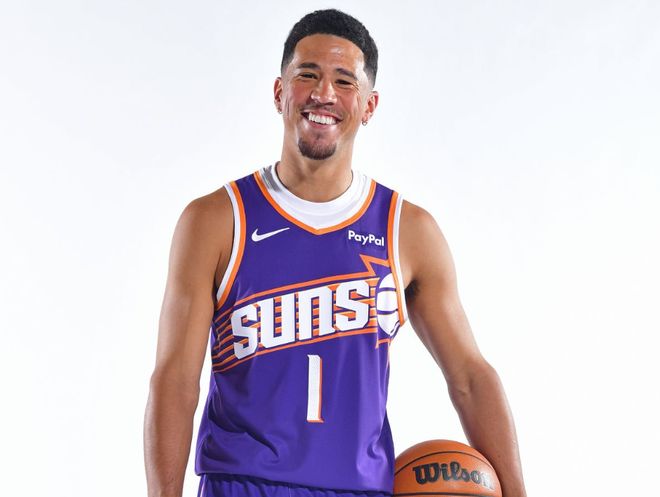 他是本赛季联盟中唯一一位场均得分超20分,且投篮命中率和三分命中率均至少达到50%(投篮次数不少于50次)的球员。他正带领森林狼队稳步前行,如今已是联盟中顶尖的美国籍球员之一。 布克,太阳队(西部联盟)