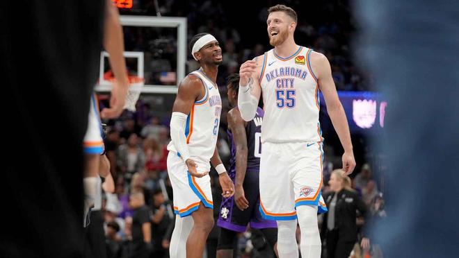 雷霆中锋以赛亚・哈滕斯坦在训练营和季前赛期间就见证了霍姆格伦的进步,并在常规赛第一周接受采访时谈及此事。2024-25赛季,由于两人各自遭遇伤病,常规赛同场出战仅20场,而本赛季这两位大个子正在攻防两端建立起良好的化学反应。 这对7英尺高的内线组合,一端守护篮筐,一端梳理进攻节奏,多次联手贡献20+得分的两双表现——包括哈滕斯坦的客场生涯最佳一战——帮助雷霆拿下多场大胜。