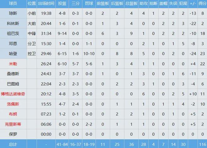 快船全队数据如下: