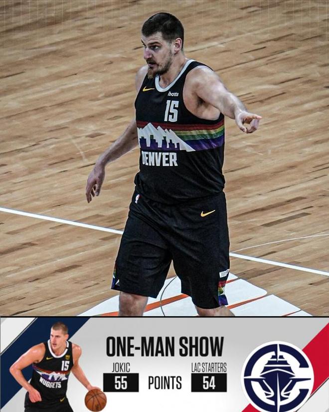 之前他本赛季的场均得分也仅有10分而已,结果就打快船一场比赛吃了顿大饺子,快船上一场比赛用了5大替补,结果布朗、洛佩斯、克里斯蒂和巴图姆等四个人加起来合计砍分23分,不如人家一个人得分多。 也就是说上一场比赛,快船的五大替补加起来不如一个克雷伊奇,这场五大首发不如一个约基奇,那么问题就来了,你每一场比赛5个先发或者5个替补加起来都打不过别人一个人,那还有啥可说的?约基奇这场打快船第1节就单节得了25分,快船只能投降了。