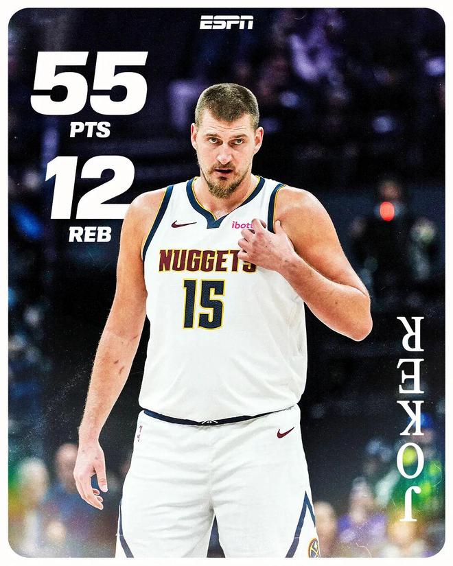 大概是什么概念呢?本场过后的一些纪录: 1、约基奇本场真实命中率高达91.5%,历史第三高效的55+ 2、55分是约基奇的生涯第三高分,上赛季他曾单场拿过61分10篮板10助攻、56分16篮板8助攻 3、生涯第4次50+,超越奥尼尔 4、约基奇生涯3次55+,与唐斯并列中锋历史第二,第一是张伯伦72次 5、这,是约基奇生涯第一次单场50+的同时带队赢球,此前3次全输了 比赛观感比数据更炸裂,不管是面对祖巴茨还是大洛佩斯(反约基奇装甲),约基奇都打得游刃有余,全场结束时,祖巴茨和大洛加起来得到28分,几乎只有约基奇得分的一半。