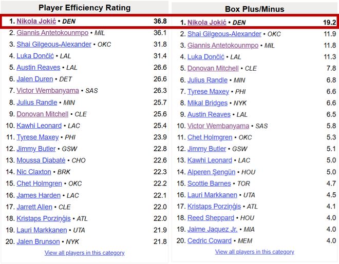 高阶数据方面,约基奇依然是炸裂: ——PER值目前36.8,刷新自己的纪录,历史第一 ——BPM值+19.2,同样赛季第一和历史第一(赛季第二的SGA+11.9) 注意,这两个数据还是本场之前的数据,今天拿了55+12+6后只会更高,真正意义上打爆了高阶数据。