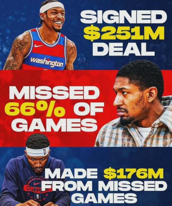 比尔的出勤率确实很糟糕,他在2023-24赛季只打了53场比赛,在2024-25赛季也是53场,到了2025-26赛季就只剩下6场了。 对于比尔个人来说,他倒是不亏,此前签下5年2.51亿美元的合同,随即缺席了66%的比赛,直接躺赚1.76亿美元。