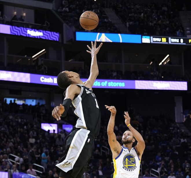 库里狂砍46+5!带领勇士逆转马刺,文班亚马8失误