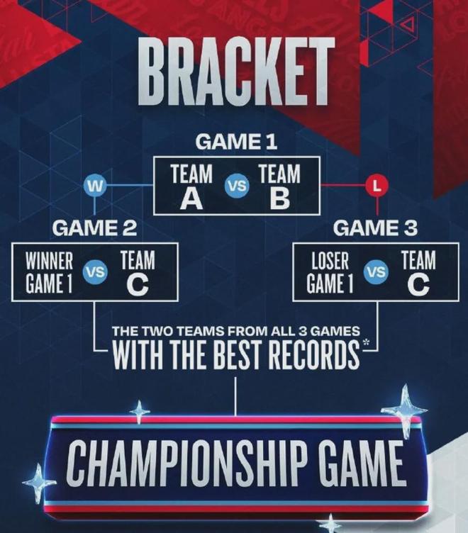这次的全明星正赛还是采用三队循环的打法,两支美国明星队和一支国际明星队,打4节比赛,每节12分钟,每队至少8名球员。 A队先打B队,胜者去跟C队打第二场,负者跟C队打第三场,战绩最好的两队去打第四场冠军赛。