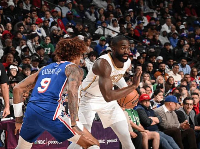作为对比,凯尔特人今夏尽管开启重建模式,先后送走了霍勒迪、波尔津吉斯、霍福德等重要核心,塔图姆还处于重伤休战状态,目前依旧以5胜6负的战绩排名东部第10位,杰伦-布朗近8场比赛有6场砍下30+,扛起了球队,NBA传统豪门的底蕴确实强大。 赛前,美媒ESPN对本场比赛进行了胜率预测,凯尔特人胜率仅有38.2%,76人胜率则高达61.8%,遥遥领先。首发阵容方面,76人队这边,乔治继续缺战,恩比德也因伤缺席,主帅排出的首发五人组为:马克西、VJ.埃奇库姆、乌布雷、贾巴里-沃克、德拉蒙德;凯尔特人这边,首发阵容则为:杰伦-布朗、科比-怀特、米诺特、奎塔、普里查德。