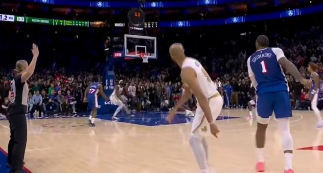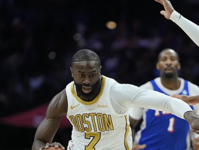 易边再战,普理查德反手上篮命中,怀特第6次三分出手也终于投进,凯尔特人一波11-0反超76人。杰伦-布朗强突造成沃克犯规打成2+1,接着干拔三分再中,一人连得6分。怀特三分连续命中,单节拿到13分,凯尔特人将分差拉开至9分。格兰姆斯后场超远三分出手,篮球划过完美弧线空心入网,三节打完,76人71-77落后凯尔特人6分。 第三节比赛,怀特打满12分钟,6投5中砍下13分3篮板4助攻1盖帽;杰伦-布朗打了10分钟,8投6中砍下14分1篮板1助攻。