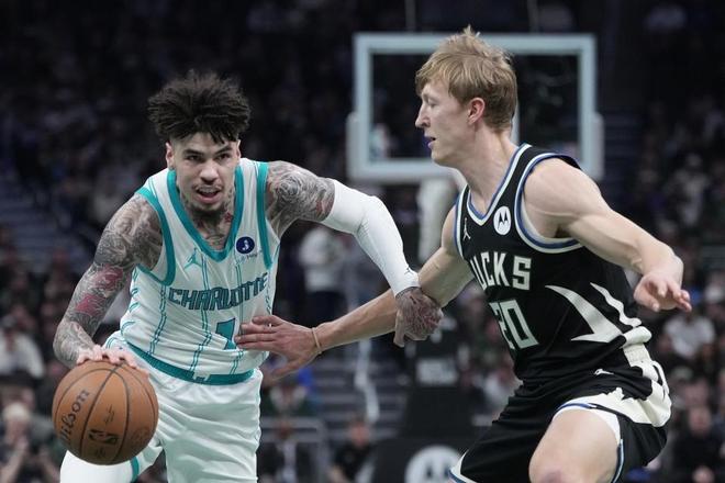 数据统计 雄鹿:库兹马29分10板5助4断、字母哥25分7板18助2断、罗林斯20分8板4助、特纳18分3板、格林13分2助、波蒂斯12分4板1助、安东尼10分3板5助、哈里斯10分。 黄蜂:布里奇斯32分7板2助、克尼佩尔32分3板3助3断、三球16分3板10助、迪亚巴特15分11板、塞克斯顿14分4助、詹姆斯12分7板3助5断。 比赛回顾 本赛季首次交锋,缺少字母哥的雄鹿客场100-111输给黄蜂。本场雄鹿缺少普林斯与小波特,黄蜂缺少米勒、格林、格威与卡尔克布伦纳。双方首节均是轰下30+得分展开对攻,两队开局就持续紧咬比分,缠斗至雄鹿19-20落后。雄鹿多点开花一波10-2攻势反超7分,黄蜂回敬一波11-5攻势,首节结束雄鹿34-33领先黄蜂1分。首节雄鹿18中13高效超过7成准星,其中三分8中6也超过7成准星,字母哥4分4助攻,库兹马与特纳均得到9分,黄蜂25中12,其中三分14中5,布里奇斯5中4得到10分。