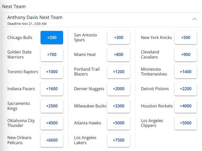 浓眉最新下家赔率出炉:公牛领跑马刺第2 勇士第