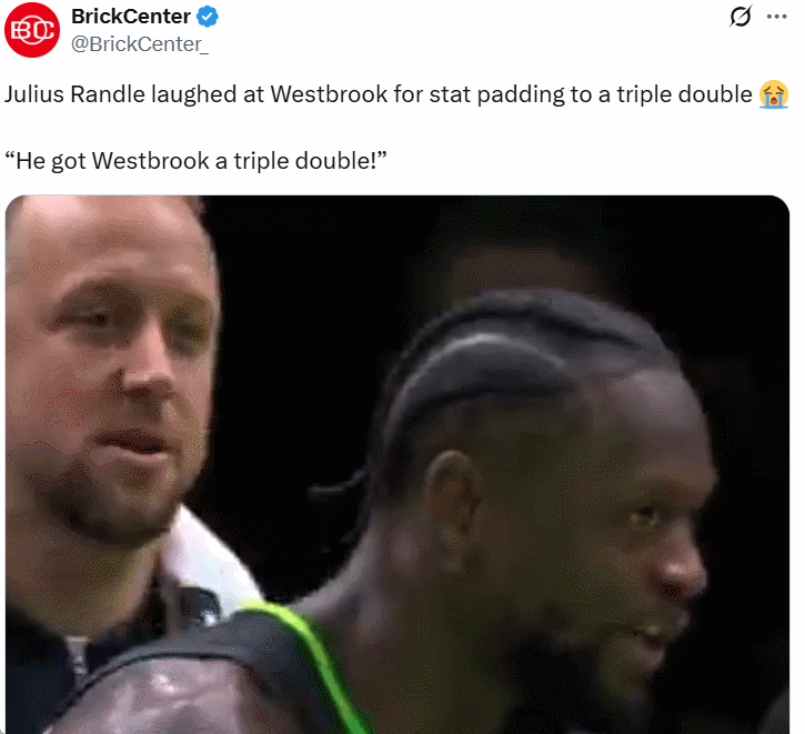 赛后美媒BrickCenter通过唇语解读兰德尔对着迪文说的话是“He got a Westbrook triple double(他让威少拿到了三双。)” 兰德尔字面意思是队友伦纳德米勒最后一投三不沾给了威少一个三双,但很明显,这是一个看似调侃,实际上具有一定指向性与嘲讽性的发言,美媒也直言兰德尔这番发言是在嘲讽威少刷数据。
