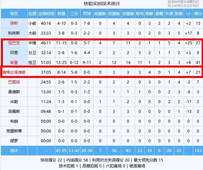 比赛数据:快船:哈登41分14板11助2帽、祖巴茨27分11板2助、博格达诺维奇21分3板3助4断、琼斯15分4板3断2帽、邓恩9分2板5助2断、科林斯8分3板2断、巴图姆7分2板3断、桑德斯3分1板1助、米勒2分2板、洛佩斯3板 独行侠:马绍尔28分8板2助、拉塞尔28分6板5助2断、弗拉格16分5板、克莱13分2板2助、加福德10分8板1助3帽、克里斯蒂10分7板2断、西塞9分3板2帽、威廉姆斯7分2板5助2断、莱夫利4分5板、马丁2分4板3助