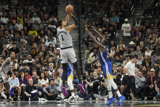 第二节双方轮换阵容阶段,双方还是比分交替上升,文班亚马三分命中以后,再送大帽。巴特勒中投止血,波斯特三分也进追平。马刺再次领先以后,理查德三分命中34-33进入暂停。但暂停回来以后,波杰姆和库里连续三分命中43-35领先到了8分。不过第二节后半段,马刺几个年轻人开始发力,追到45平。最后一攻库里突破打卡斯尔一个,47-45领先2分结束上半场。
