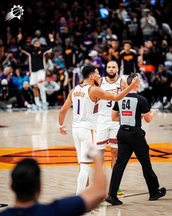 次节比赛,双方进攻端火力均是大幅升级,两队均是单节轰下30+得分展开对攻,尤其是太阳第二节狂轰37分极为给力。太阳第二节37-32净胜5分,上半场结束太阳58-57领先老鹰1分。前两节比赛,布克10中4得到12分6助攻,杰伦一度肘击狄龙被吹罚一级恶意犯规。 中场休息回来,太阳保持旺盛的进攻火力,他们连续两节单节狂轰37分,且限制老鹰第三节哑火仅得到20分。太阳第三节疯狂打出37-20净胜17分攻势,前三节比赛结束,太阳已经扩大95-77领先老鹰18分优势。