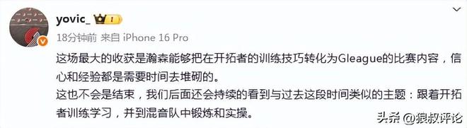 青岛记者:杨瀚森首场适应G联赛后 第二场就展现