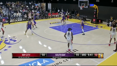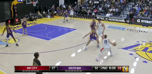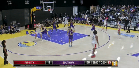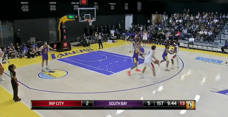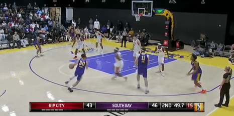 第二节,开节段杨瀚森内线强攻连得7分,帮助混音迅速迫近至2分分差,节中段杨瀚森短暂下场休息之后再度登场,混音依靠库克连续得分与南湾湖人保持拉锯,节末段杨瀚森终于得到机会,顺下冲框造犯规两罚全中,随后杨瀚森再度连送对手两帽,可惜最后阶段杨瀚森三分不中,半场战罢,南湾湖人48-43混音。 杨瀚森转身脚步强起打进