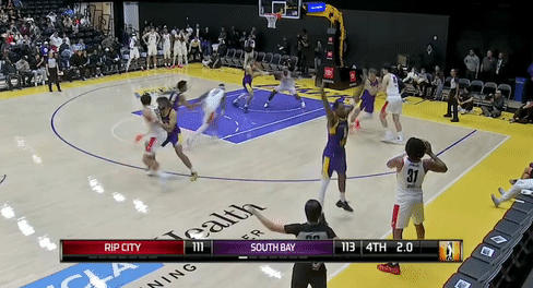 第四节,开节混音连续命中三分追至10分分差,随后杨瀚森登场,混音继续追分,杨瀚森二次进攻得分,随后助攻队友,但南湾湖人始终保持回应维持6分上下领先,后半节杨瀚森频繁被换上换下没有太多机会,最后17秒杨瀚森连续两记命中三分追至1分分差,南湾湖人两罚中一,分差2分,2秒留给混音绝杀机会,可惜库克三分绝杀不中,全场结束,混音惜败111-113南湾湖人。 最后关键时刻杨瀚森二次补篮打进