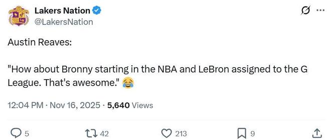 值得一提的是,其父亲詹姆斯目前被下放到G联赛训练,这样有趣的对比也在赛后被队友里夫斯调侃。