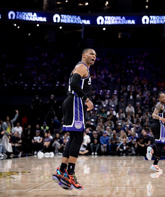 此役文班亚马因伤缺战,让马刺内线防守威慑力断崖式下滑,这也给了国王此战内线双塔小萨博尼斯和德罗赞进攻端大开杀戒的空间,二人上半场就在威少的传球助力下合力砍下了28分,不过威少前两节的失误太多,达到了5次,给了马刺不少反击下快攻的机会,再加上国王防守孱弱,半场战罢带着8分的劣势,回到了中场更衣室。 重新回到赛场之后,威少控制住了自己的失误,最终凭借6中3的三分球,贡献了14分、9个篮板、7次助攻和2次抢断的数据,一战超越哈弗里切克、皮尔斯两大传奇,升至NBA历史得分榜第18位,而替补登场的施罗德,也打出了本赛季最高光的个人表现,一个人命中了5记三分球,打出了22+6+5的表现。