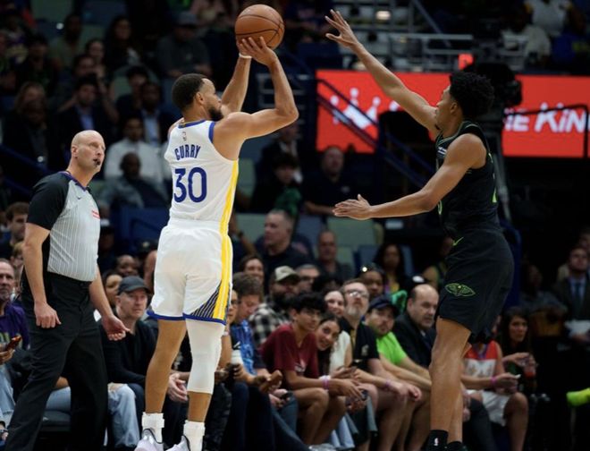 本场比赛穆迪上来就火力全开,首节就飙进7记三分,直接刷新个人单场命中新高,同时也在期待着他能够创造纪录。可在之后勇士进攻陷入低迷,穆迪也未能延续势头,其中勇士首节轰下44分,第二节和第三节合计拿到41分,好在鹈鹕这边进攻十分糟糕,完全跟不上节奏,随着末节勇士找回手感,将分差拉开,比赛也早早失去悬念,勇士取得了一场18分大胜。