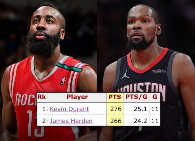 就在刚刚!KD超哈登成队史第一人:这就是火箭
