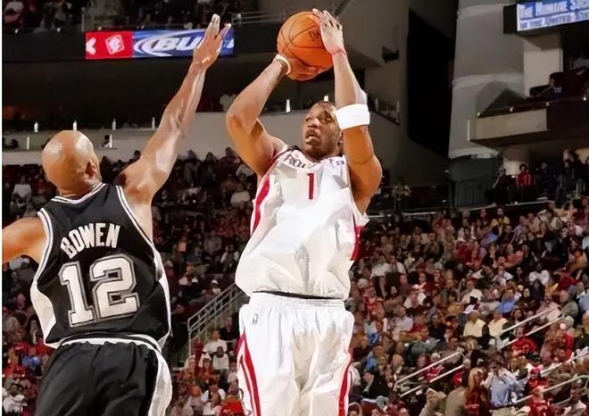 最后让我们来看一下载入NBA史册,至今仍会被球迷们津津乐道的麦迪时刻。对手方面,火箭当时在主场迎战马刺,马刺那时是联盟最强的球队之一,拥有GDP组合的同时,还有一众能力拔群的角色球员。 那个赛季的马刺,是联盟防守能力最好的队伍,他们经常能够将对手的得分限制在80以下。而且马刺阵中的邓肯、鲍文都是防守专家级别的存在。 接下来我们看比赛过程,在最后阶段火箭依然落后,麦迪开始奋力反击。为了能够遏制他得分,邓肯和鲍文都先后承担了防守麦迪的重任,但依然无法阻挡他疯狂得分。 从最后的结果来看,麦迪最终帮助火箭上演惊天逆转,在主场赢下比赛,故事性已经远超上面的两人。