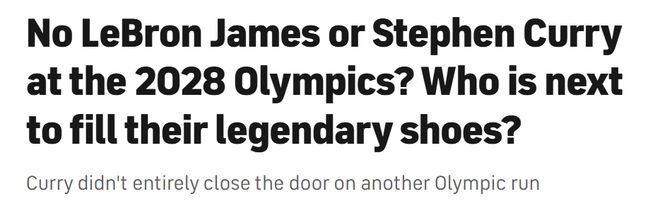 詹姆斯不会出战2028年奥运!库里参赛可能也极低