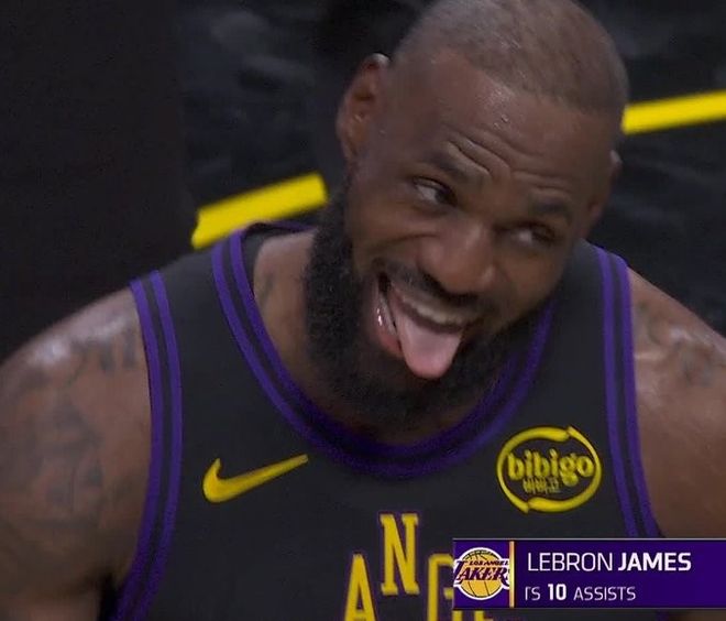 詹姆斯复出首秀:11+12助攻创多项历史第一 吐舌