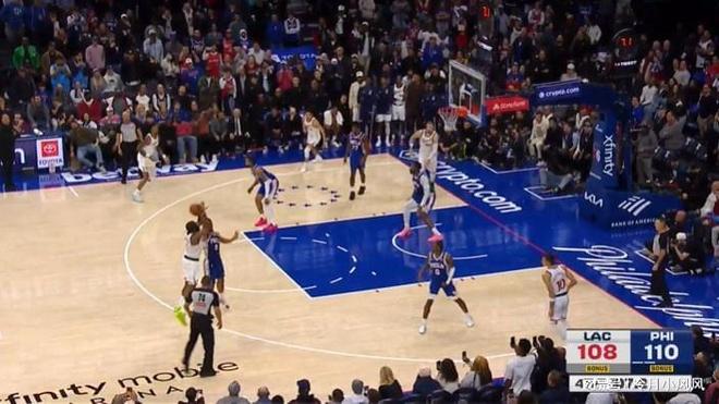 比赛还剩下28秒时,祖巴茨在油漆区内停留超过三秒,应该吹罚防守三秒违例,76人得到一次罚球机会。