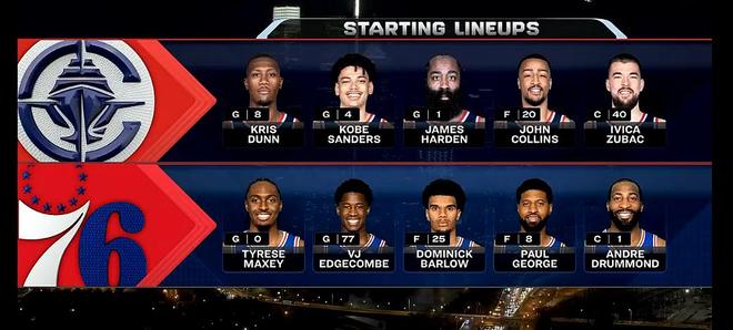 比赛开始76人率先进攻,小将桑德斯主防乔治,埃奇库姆三分首次出手不中,哈登转换上篮被防下,乔治过来接到马克西助攻三分手起刀落,赛季首次出手就命中,科林斯罚球线跳投不中,乔治三分线外拿球骗起桑德斯获得三罚机会,命中2球76人5-0开局!科林斯突破放篮不中祖巴茨补扣得分,巴洛顺下上篮不中、乔治三分也没有,哈登、桑德斯两次转换打成,快船6-0小高潮反超比分。马克西正面突破上篮不中,哈登助攻邓恩三分命中,祖巴茨篮下抛投也有,乔治三分依旧不中,哈登转换三分再中,快船再打8-0高潮比分来到14-5,76人不得不暂停,76人攻防转换防得太差了!回到比赛埃奇库姆对上桑德斯,中距离跳投止血,防守端科林斯内线错位打成2+1,打到目前哈登队友表现不错。乔治拿球想单打哈登失败了,马克西篮下抛投不中,哈登妙传祖巴茨篮下吃饼19-7快船领先12分!