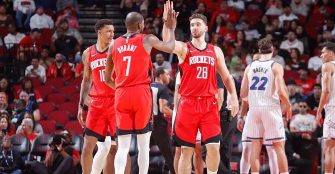 点评:上周三场比赛你可是赢下了其中的两场(灰熊、热火),输掉了与魔术的对决。目前总战绩8胜5负排名东部第5,尼克斯场均比对手多8.5次出手机会;而当米切尔-罗宾逊在场时,他们每48分钟能比对手多出惊人的17.6次投篮机会。他们在“效率四要素”(失误率与篮板率——攻守两端合计)的每一项都排在联盟前12名,没有任何其他球队能在这四项中全部排名前17位。与上赛季相比尼克斯对于先发五人组的依赖明显减少,迈克布朗多元化的执教风格让这支球队攻防两端可变性更大,他甚至让麦克布莱德顶替布伦森先发,这在锡伯杜时代是无法想象的事情! 第三名(火箭):上期第3!