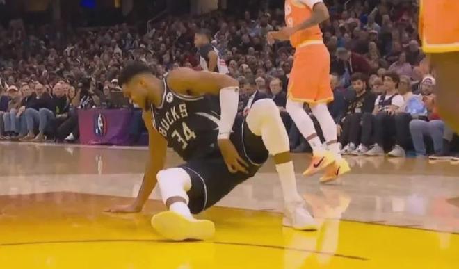 但要是字母哥打不了呢? 比赛进行到第二节,字母哥突然捂着裆部倒下了,他随即退出比赛,直接回到了更衣室。