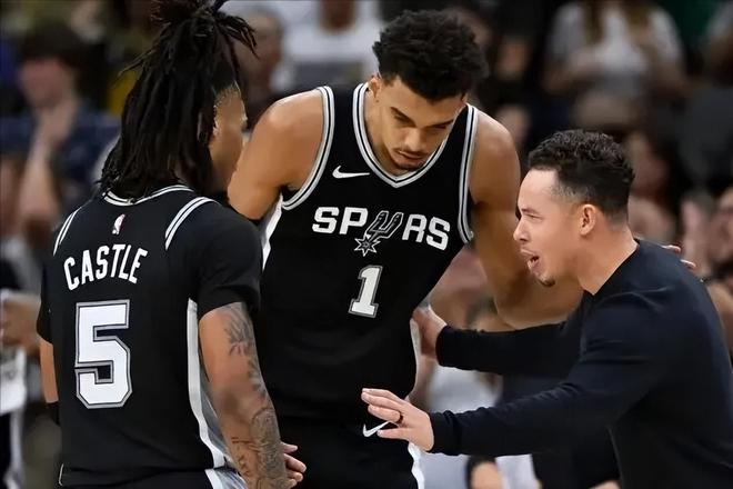 然后是马刺队,一夜之间倒下了3个人。一个是文班亚马,当家球星,他是在对阵勇士的比赛后感觉不适,然后检查发现,左小腿拉伤,需要缺席2-4周。文班亚马不知道自己是在哪一个回合受伤的,比赛结束后才感觉不适去检查的。然后是后卫卡斯尔,他是遭遇了左髋屈肌拉伤,需要在1-2周后复查。第三个是麦克劳林,他是在训练中受伤的,他是右腿筋拉伤,需要休息4-6周。