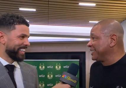 也是父子同台,雄鹿赛前小里弗斯采访父亲老里