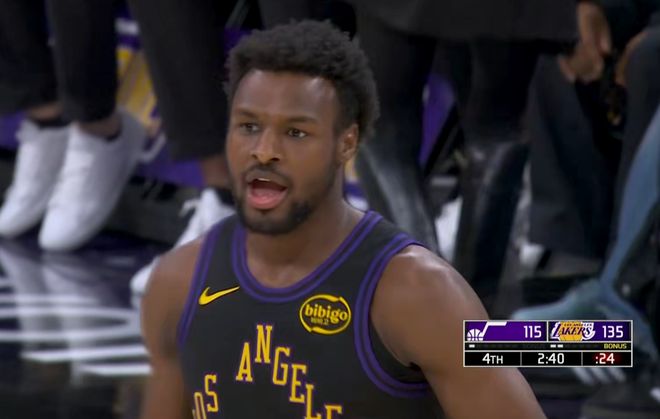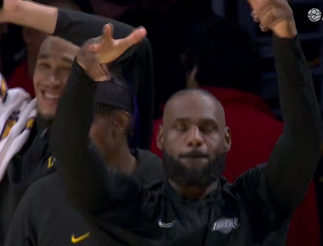 布朗尼疯狂轰进本场比赛自己的第1个三分之后,詹姆斯骄傲庆祝,这也是布朗尼本赛季投中的第3个三分,这意味着全场父子篮球都展现出了自己的风采。詹姆斯一个人证明了自己为何是全NBA历史上最全能的球员,打有球可以,打无球也可以。