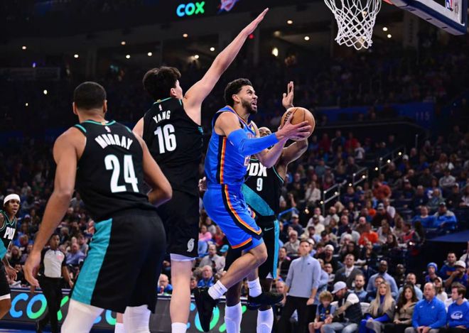 北京时间11月24日,当开拓者送给卫冕冠军新赛季首败,也是至今的唯一一败。如今赛季二番战开拓者客场惨遭联盟第一的雷霆122-95吊打溃败,但杨瀚森此役终于命中个人NBA生涯首记三分取得突破。杨瀚森本场替补17分12秒,贡献11中3,其中三分6中1与罚球1中1,得到8分4篮板3助攻1抢断1盖帽数据,NBA生涯28分超越周琦24分,升至NBA中国球员总得分榜第5位。