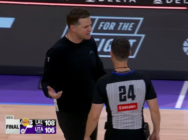 绝杀被湖人抱摔不吹?爵士主帅赛后拒绝退场!